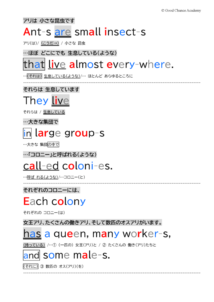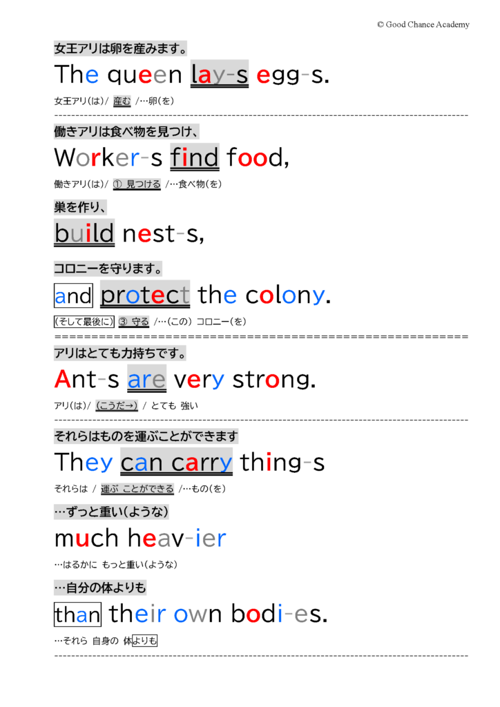 中学進学を控えたご家庭から「文法も単語も習っていないのに、いきなり文章を読むのは無理があるのでは?」というご質問をよくいただきます。ですが、百聞は一見に如かず。まず以下の教材サンプルをご覧ください。Level 1 の中盤のレッスンの一部です。