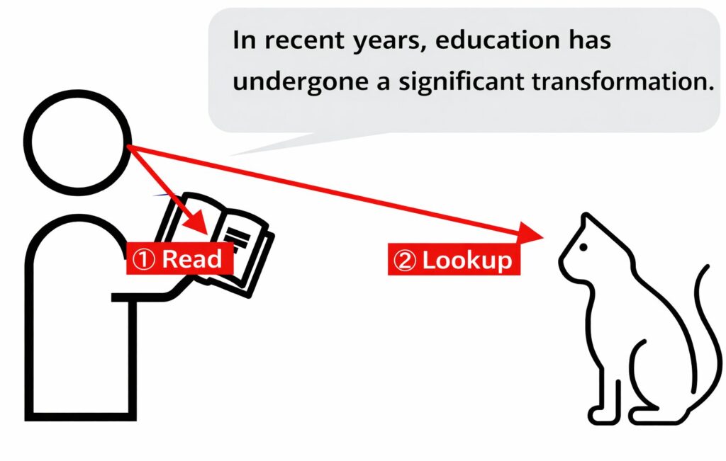 正確な音声を覚えたら、センテンスに使われている文法・構文・単語や表現の意味を身につける音読練習「リード&ルックアップ(Read & Lookup)」に進みます。